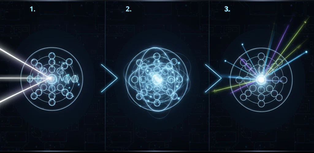 Il processo di fluorescenza segue uno schema apparentemente semplice, ma dal punto di vista fisico estremamente raffinato e potente.